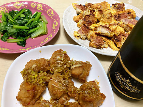 揚げた鶏肉に、刻んだ長ネギと醤油ベースのタレをかけた中華料理