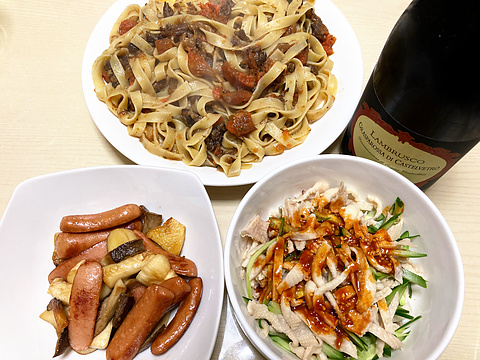 赤ワインパスタ、