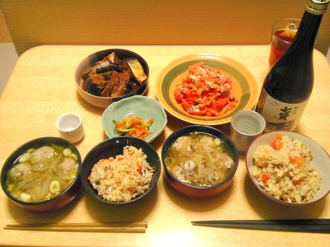 本日のメニューは、サバの炊き込みご飯、サバのつみれ汁、サバの味噌煮、にんじんとサバのマヨネーズ和え、です。