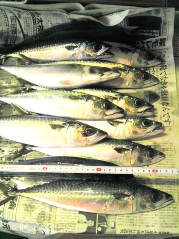 大きいマサバ12匹です。重くて重くて、車に運ぶまで大変でした「(^^; )