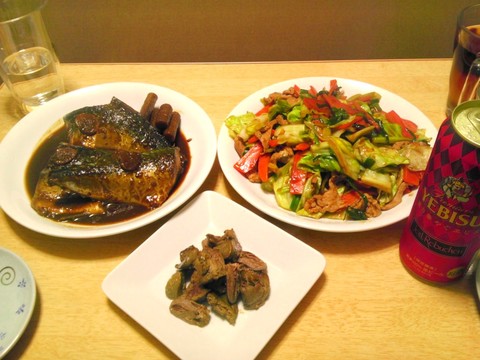 サバの味噌煮、レバーのオーブン焼き、回鍋肉