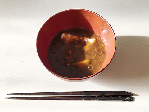 かぼちゃのいとこ煮にあんこを追加して、お餅を入れてぜんざいにしました。