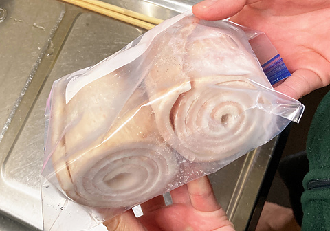 豚皮は上の写真のような状態でスーパーで売っていました。