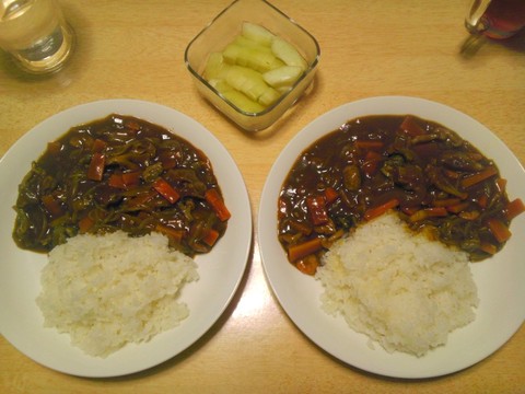 本日のメニューは、シーフードきのこカレー、自家製ウリのぬか漬け、です。