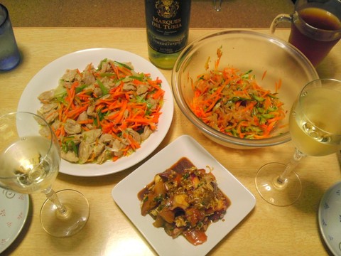 本日のメニューは、鶏ハラミ炒め、中華クラゲのサラダ、海鮮ユッケ、です。