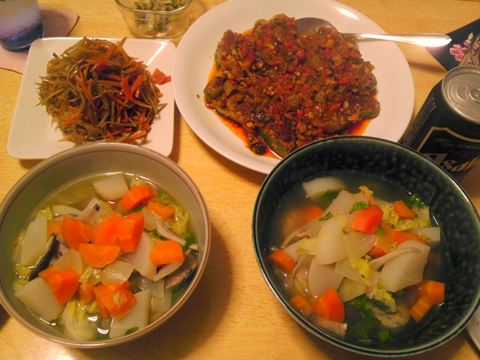 前の晩、夜中近くにぴかさんがいきなり台所で何かし始めたので、何かと思ったら「突然きんぴらが作りたくなった」とのこと。