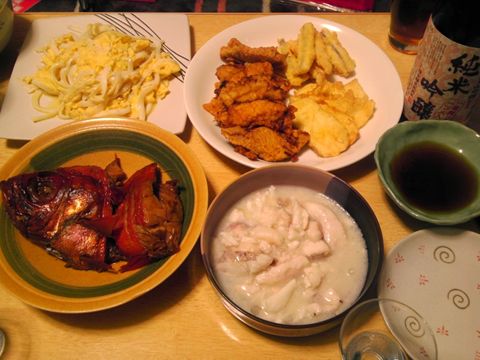 非常に魚さかなしていますが、なぜこうなったかというと、前の晩がぴかさんの職場の飲み会で、そこで出た刺身やお寿司やキンメの煮付けなどを大量に持ち帰ってきたからです。