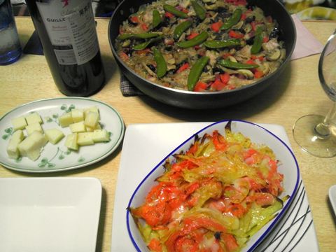 パエリア、ポテトとにんじんのチーズ焼き