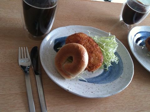 やはり張り切りすぎて、ベーグルが小さいのにコロッケが巨大になってました。