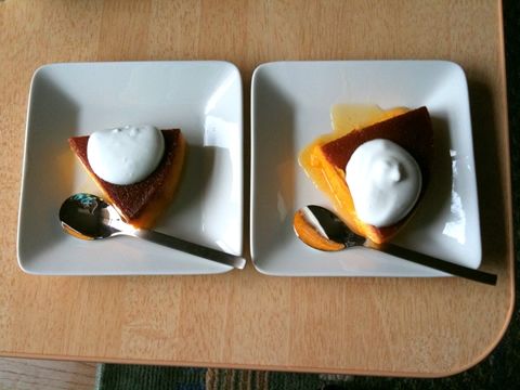 右の皿を左の皿と、プリンの大きさがかなり違いますが。。。