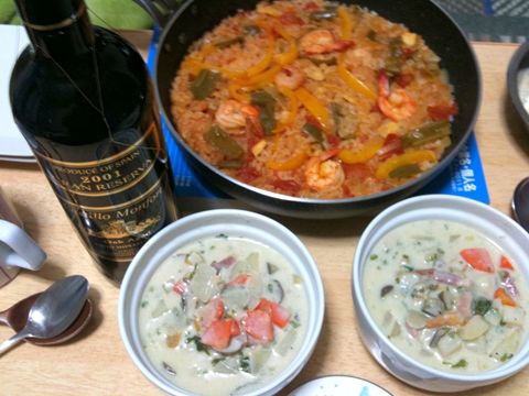 魚介のパエリアと野菜たくさんのクラムチャウダーで今年をしめくくりました。