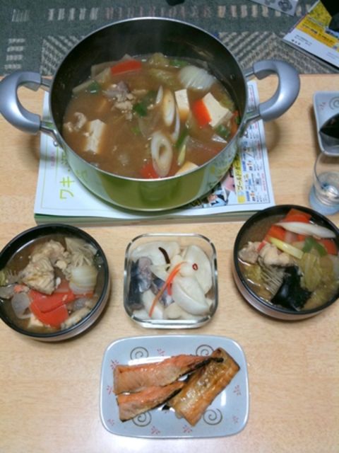 お昼にお正月用の生鮮食品を買いに近くの漁港にある直販所にいったのですが、それほど品揃えが豊富なほどではなく、そこでは無料のあら汁だけいただいて、別のところで金目鯛1匹とお刺身を買ってきました。
