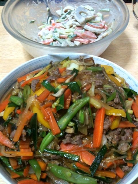チャプチェ、れんこんサラダ