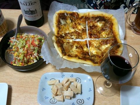 下のお皿はアジの刺身を買ってきて包丁でたたいて味付けし、なめろうにしたものです。