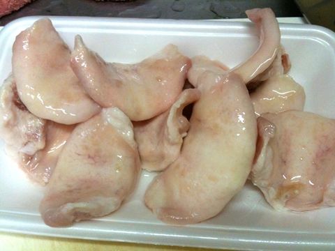 上の写真は豚ウチワです。さて、このウチワっていったいどこの部位なんでしょうね? ちょっと調べてみましたがわかりませんでした。先日のノドブエよりも超マイナーらしいです。これも固いです。砂肝よりも固い。