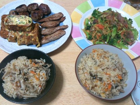 真ん中上のお皿は豚うちわと野菜の炒め物です。