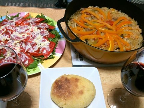 右の写真のパエリアの上に乗っているオレンジのパプリカがとてもきれいです。
