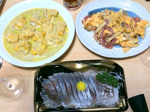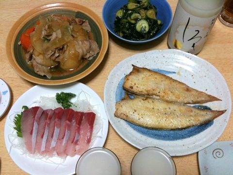 左のサーモンサラダはほんとは昨日のおかずだったんですが、冷蔵庫で冷やしたまま晩御飯時に出し忘れてしまったので、今日のおかずになりました。