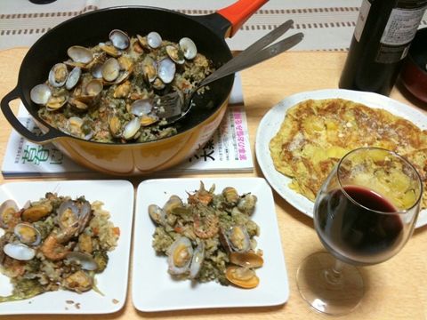 鍋で作るパエリア さるえび入り
