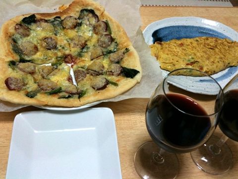 さっそく家に帰ってきたその日にぴっかりさんが、おみやげでもらってきた特産品の明日葉を使ってピザを焼いてくれました。