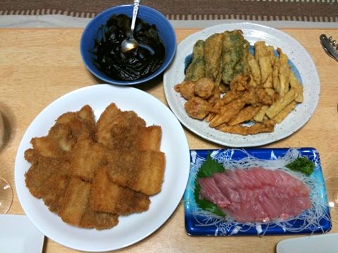 とんかつ、天ぷら、お刺身。みそだれ付き