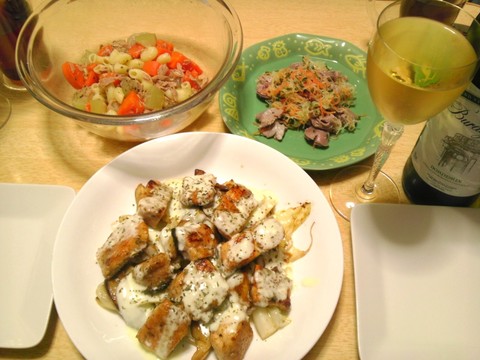 鮭のソテー・ヨーグルトソースがけ、砂肝の西洋なます、他
