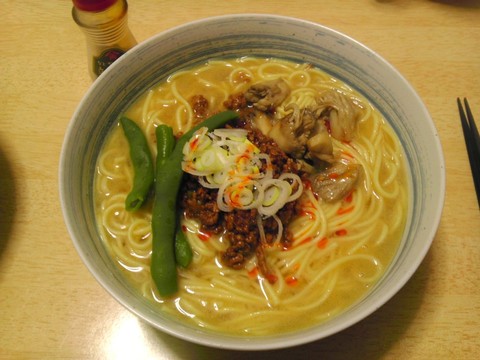 ぴかさんのほうにはたっぷりラー油を、私のほうにはちょっぴりラー油を。