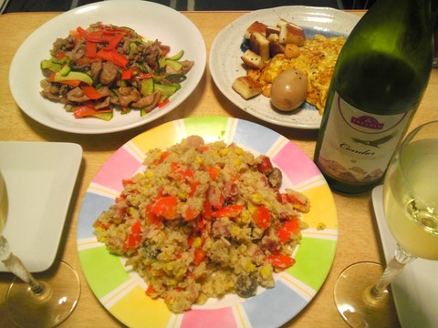 洋風卯の花、豚肉とにんじんとズッキーニの炒め物、他 本日のメニューは、洋風卯の花、豚肉とにんじんとズッキーニの炒め物、玉子とはんぺんのバター炒め、です。 卯の花にはすり下ろしたチーズやソーセージが入っていておいしかったです。和風のよりもこっちのほうが好きかも。