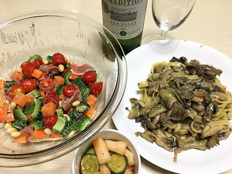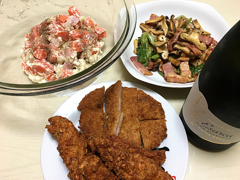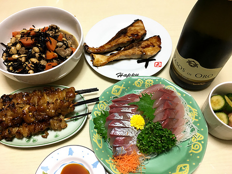 冷蔵庫に冷えてるワインが赤しかなかったため、「イワシの刺し身なのに赤ワインかー」とがっかりのぴかさん。白ワインか発泡性のワインが良かったようです。
