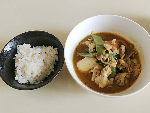 北海道土産のスープカレーの素を使ってスープを作っています。