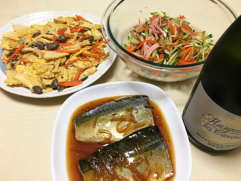 サバは冷凍パックの市販品です。すぐ食べることができるし、骨がなくて味も良いです
