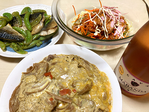 塩サバとスナップエンドウのレモン炒め、他
