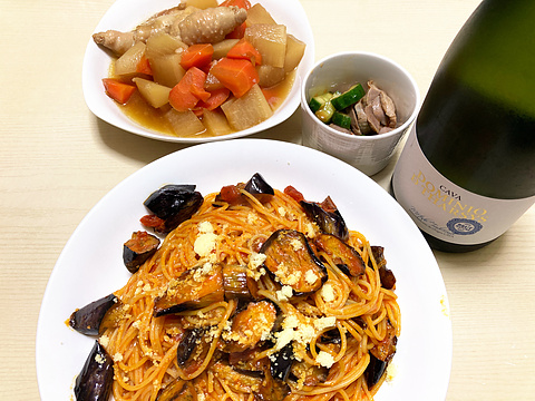 揚げナスのトマトソースパスタ、他