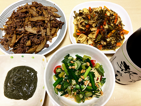 昆布と湯葉の牡蠣しょう油炒め、他