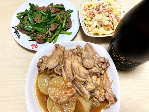 鶏のバックリブと大根の煮込み、他