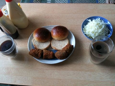またぴっかりさんが朝からはりきって「今日はカツバーガーだー!」と言っております。