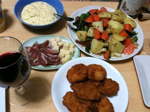 ホタテフライ&タルタルソース、野菜炒め