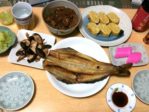 土手煮、卵焼き、ほっけの開き