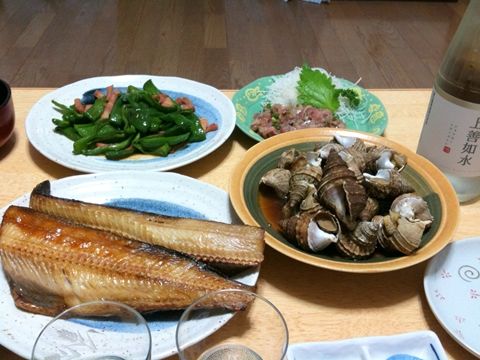 スーパーでつぶ貝のパックが安売りしてたので、貝好きなぴっかりさんが2パック買ってきて煮付けてくれました。