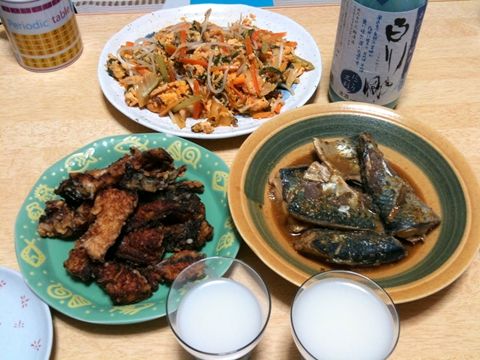ぴっかりさんが全部さばいてくれて、そのうち3匹分をから揚げと煮付けにしてくれました。