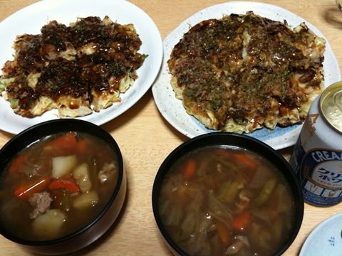 なにやら熱心にインターネットで調べて、お好み焼きのわりにはかなり時間をかけて作っていました。