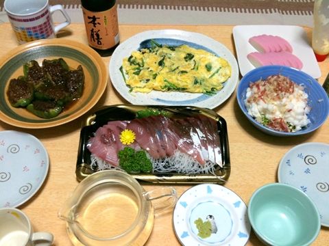 ピーマンの肉詰め、ほうれん草の卵とじ、ねばねばサラダ